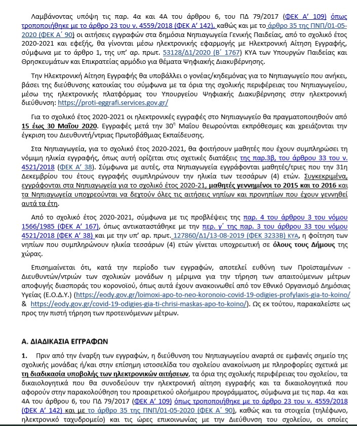 Διαβάστε εδώ ολόκληρη την εγκύκλιο για το Νηπιαγωγείο