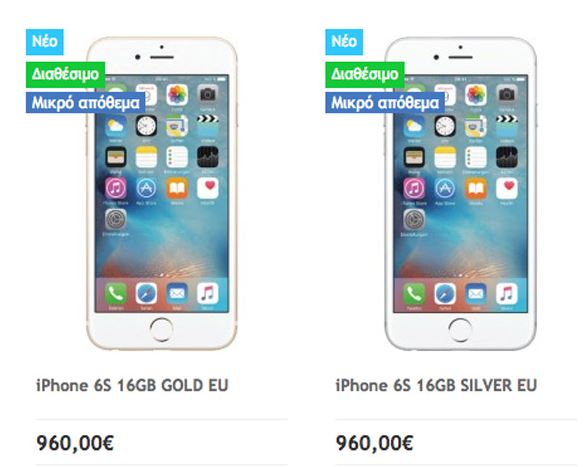 Ορισμένα ελληνικά ηλεκτρονικά καταστήματα έχουν φροντίσει να φέρουν από Ευρώπη κάποια πρώτα κομμάτια και ένα από αυτά διαθέτει το iPhone 6s 16GB και στα τρία χρώματα, με τιμή 960 ευρώ.