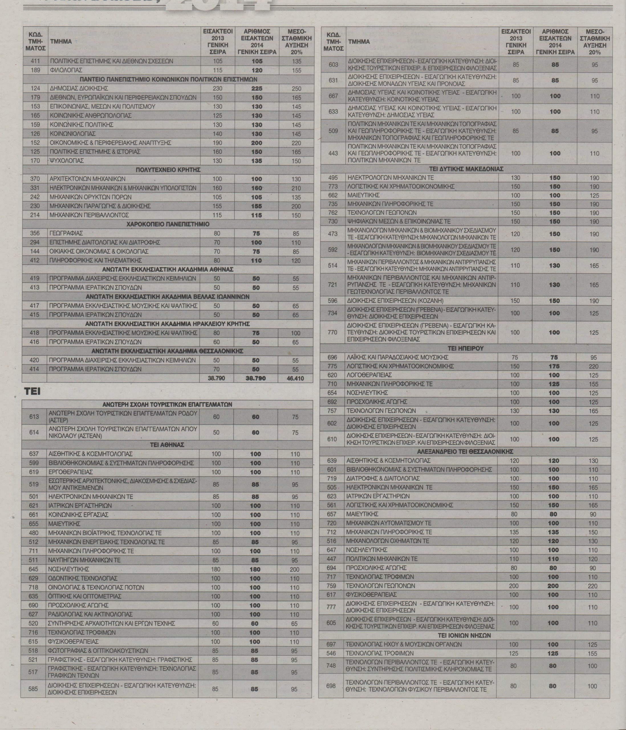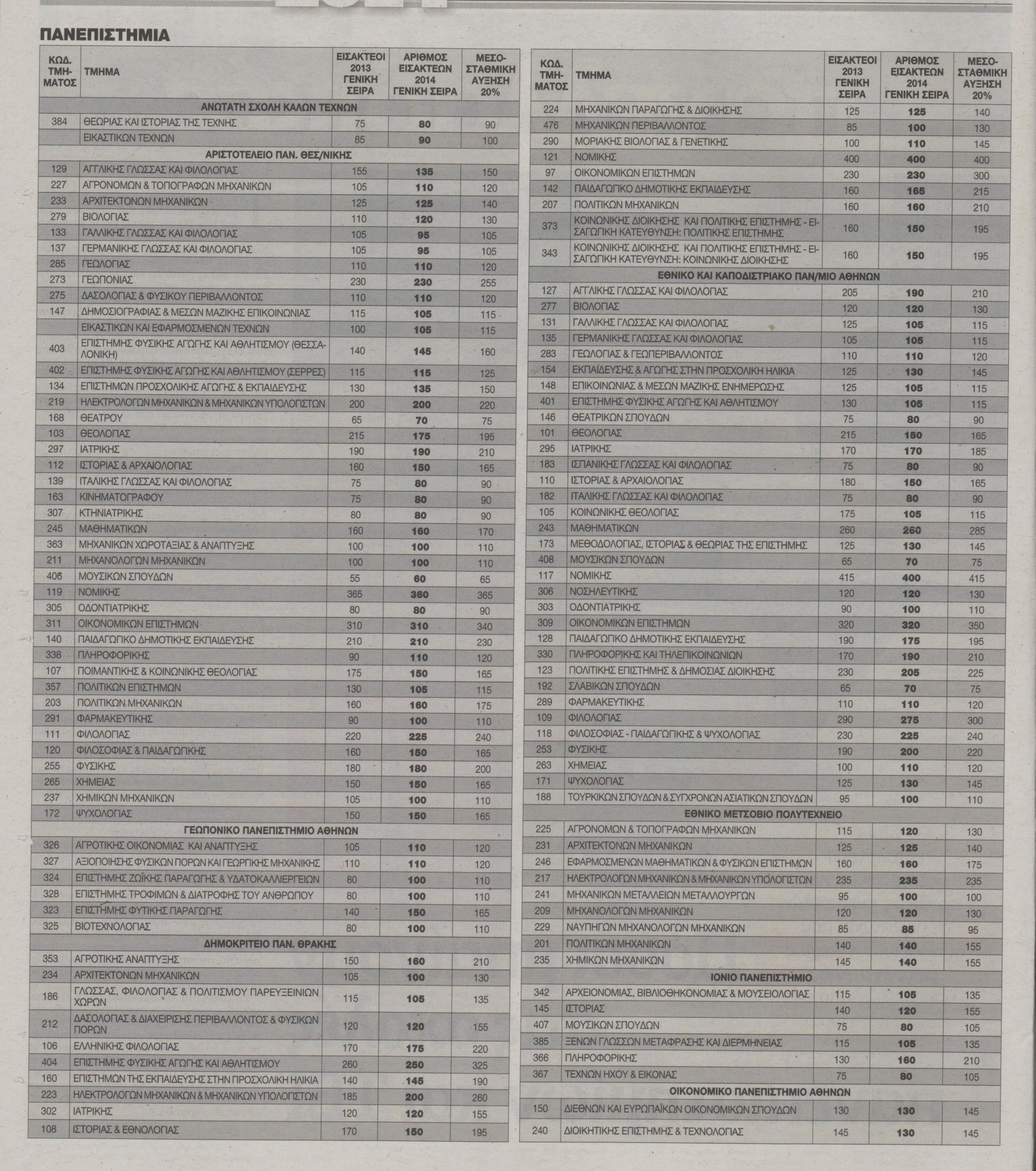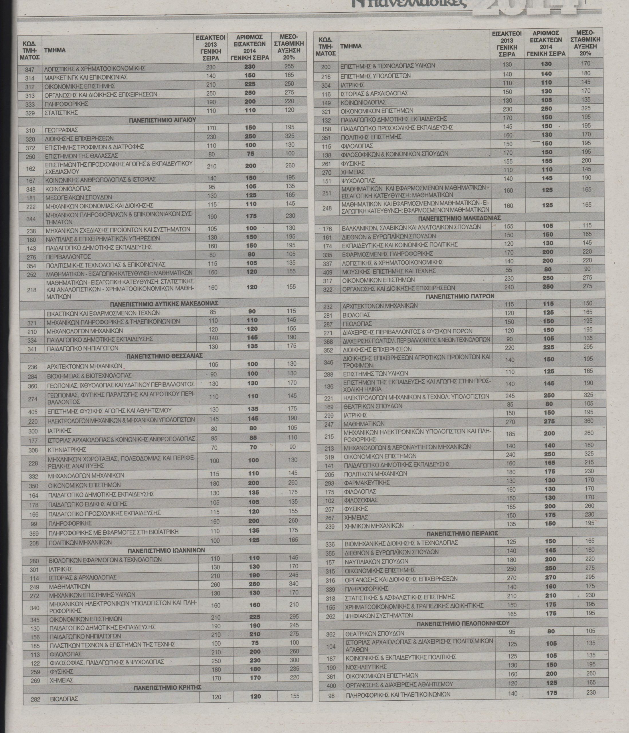Πόσοι μπαίνουν στις σχολές πανεπιστημίων και στα ΤΕΙ-Πίνακες