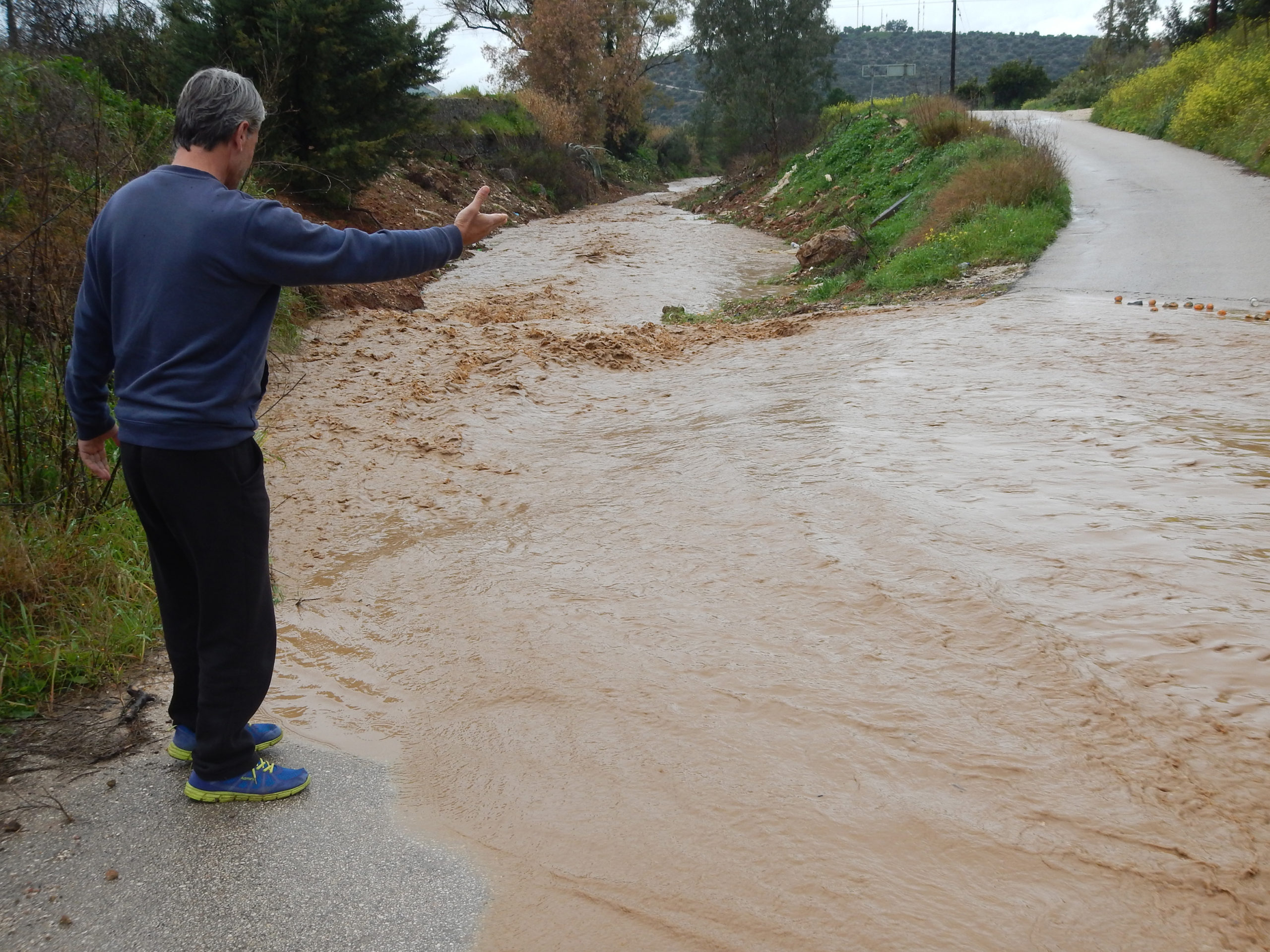 Ο ξεροπόταμος Ραμαντάνη έχει «κόψει» το δρόμο στα δύο σε περιοχή του Ναυπλίου.