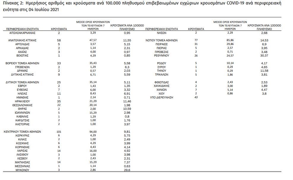 Δείτε την κατανομή των 603 νέων εγχώριων κρουσμάτων ανά Περιφερειακή Ενότητα:
