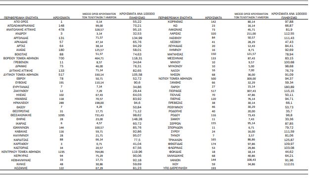 Η κατανομή των 10.223 νέων εγχώριων κρουσμάτων ανά Περιφερειακή Ενότητα παρουσιάζεται στον κατωτέρω πίνακα: