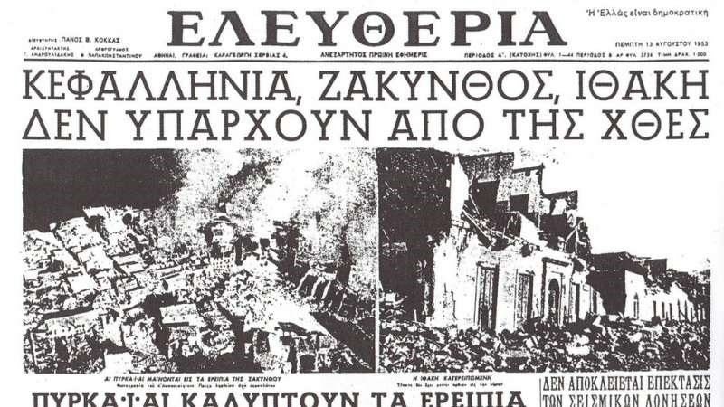 Πάντως, ο φονικότερος σεισμός του προηγούμενου αιώνα χτύπησε στις 12 Αυγούστου του 1953 το νησιωτικό σύμπλεγμα Κεφαλονιά-Ζάκυνθος-Ιθάκη, όπου καταγράφηκαν συνολικά 455 νεκροί, 21 αγνοούμενοι και 2.412 τραυματίες. Ενδεικτικό της σφοδρότητας του σεισμού ήταν το γεγονός ότι από τα συνολικά 33.300 σπίτια των τριών νησιών, κρατήθηκαν όρθια κάτι παραπάνω από 5.000. Ενδεικτικά είναι τα πρωτοσέλιδα των εφημερίδων της εποχής… «Κεφαλληνία, Ζάκυνθος, Ιθάκη δεν υπάρχουν από της χθες» δημοσίευε σε πηχυαίο τίτλο στις 13 Αυγούστου 1953 η εφημερίδα «ΕΛΕΥΘΕΡΙΑ».