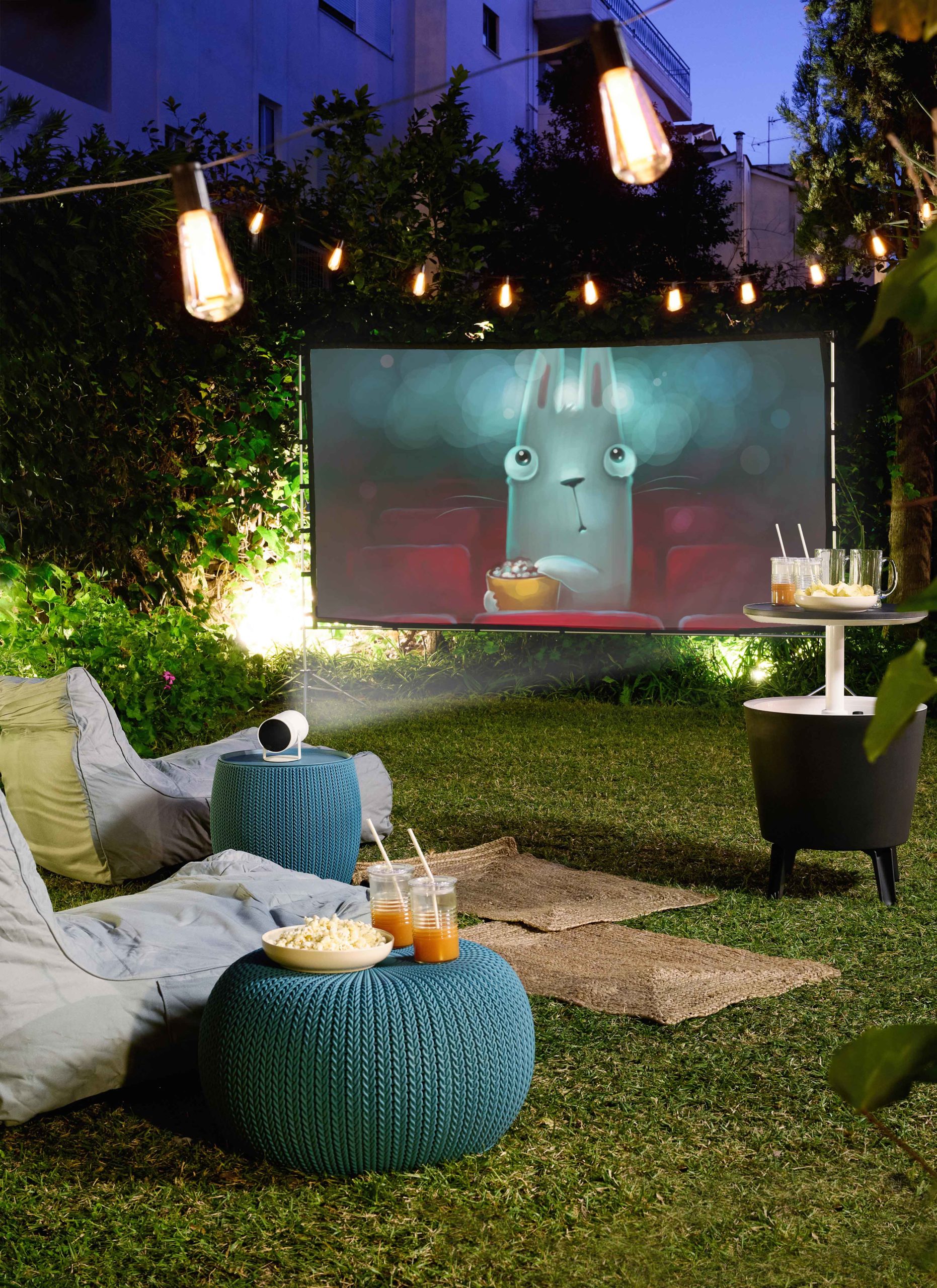 Cinema Kipos: Δημιούργησε το απόλυτο home cinema στον κήπο σου επιλέγοντας αναπαυτικές πολυθρόνες, πανί βιντεοπροβολέα, φορητό προτζέκτορα, αμέτρητες επιλογές σε τραπεζάκια κήπου, ριχτάρια και ατμοσφαιρικά φαναράκια που υπόσχονται να αναδείξουν το σπίτι σου σε μοναδικό σινεφιλ προορισμό της παρέας.