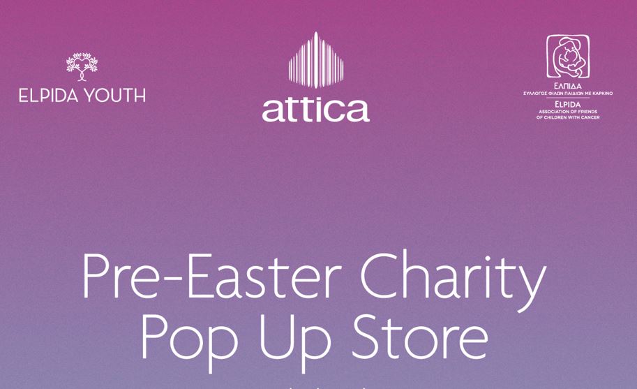 Με ανοιξιάτικη διάθεση και απεριόριστη αγάπη για τα παιδιά της «ΕΛΠΙΔΑΣ»,  η Επιτροπή Elpida Youth ενώνει τις δυνάμεις της με τα πολυκαταστήματα attica και τα brands MARIANNA LEMOS, EMILY VAFIAS, KOKU CONCEPT και VST SA και παρουσιάζουν ένα PreEaster Charity Pop Up Store, στο ισόγειο του attica Golden Hall από την Τετάρτη 30 Μαρτίου έως το Σάββατο 2 Απριλίου 2022.