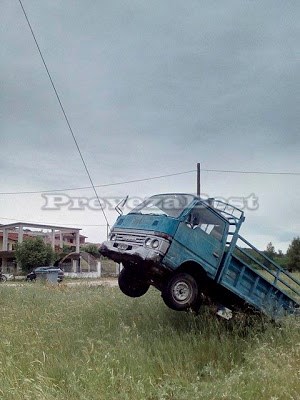 Όπως μεταδίδει το prevezabest.blogspot.gr, το περιστατικό συνέβη στον Ωρωπό Πρέβεζας. Ο ιδιοκτήτης χωρίς να το αντιληφθεί το κρέμασε από το επίτονο, το καλώδιο που συγκρατεί την κολόνα και λέγεται πως για να βγει από το όχημα χρειάστηκε να κάνει άλμα. Το πώς τα κατάφερε είναι άλλο θέμα…