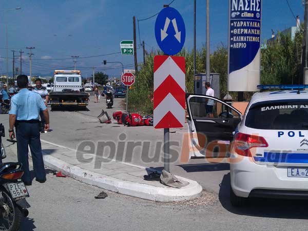 Η μοτοσυκλέτα συγκρούστηκε σφοδρά με ΙΧ αυτοκίνητο. Αποτέλεσμα ήταν να τραυματιστεί σοβαρά ο οδηγός της, ο οποίος μεταφέρθηκε στο Νοσοκομείο της Πρέβεζας.