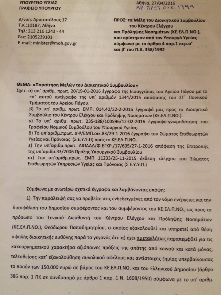 Ο Παύλος Πολάκης ζήτησε χθες, μέσω ανάρτησής του στο Facebook, την παραίτηση των μελών του Διοικητικού Συμβουλίου του ΚΕΕΛΠΝΟ και την επανατοποθέτηση από το υπουργείο νέων μελών.