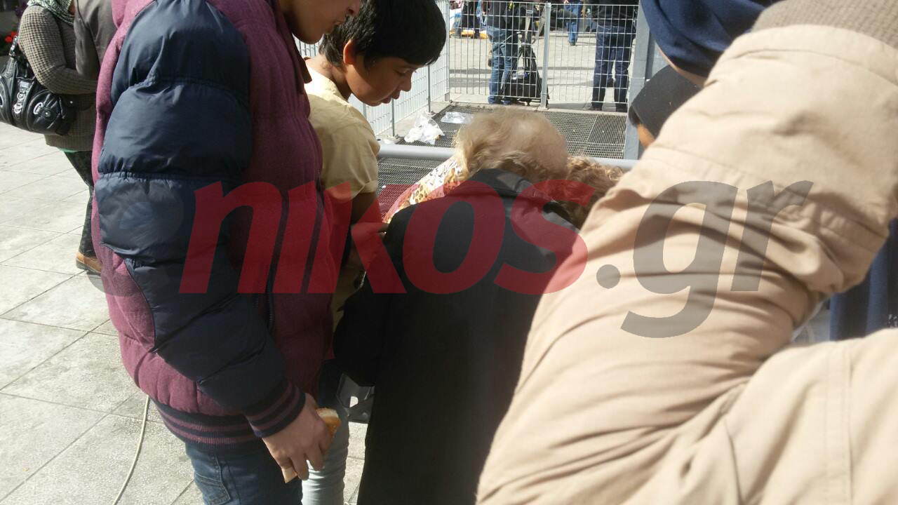 Όπως βλέπουμε στις φωτογραφίες του enikos.gr, δύο ηλικιωμένες γυναίκες πήγαν στην πλατεία Βικτωρίας, όπου βρίσκονται εκατοντάδες μετανάστες, και πρόσφεραν τρόφιμα σε ανήλικα παιδιά.
