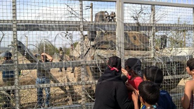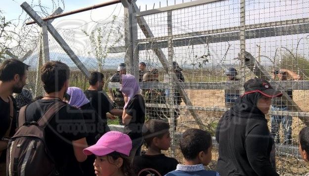Πρόσφυγες από τον καταυλισμό της Ειδομένης έχουν συγκεντρωθεί μπροστά από τον σιδερένιο φράχτη στα σύνορα Ελλάδας – Σκοπιών και διαμαρτύρονται ζητώντας να ανοίξουν τα σύνορα. Ανάμεσα τους βρίσκονται και πολλά μικρά παιδιά.
