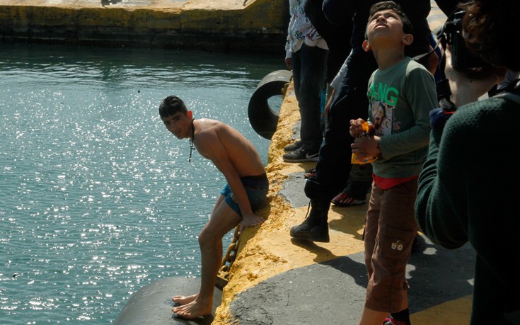 Αρκετοί πρόσφυγες αγνόησαν την απαγόρευση από το Λιμεναρχείο και βούτηξαν στη θάλασσα για να κάνουν μπάνιο στο λιμάνι του Πειραιά. Η απελπισία τους οδήγησε σε αυτή την κίνηση, δεδομένου ότι είχαν μέρες να κάνουν μπάνιο και ήθελαν να ξεπλυθούν. Παρά το γεγονός ότι στο συγκεκριμένο σημείο η θάλασσα είναι βρώμικη από τα πλοία που δένουν στο λιμάνι, οι πρόσφυγες αγνόησαν τους κινδύνους που υπάρχουν και διέφυγαν της προσοχής των λιμενικών, που περιφρουρούν το χώρο.