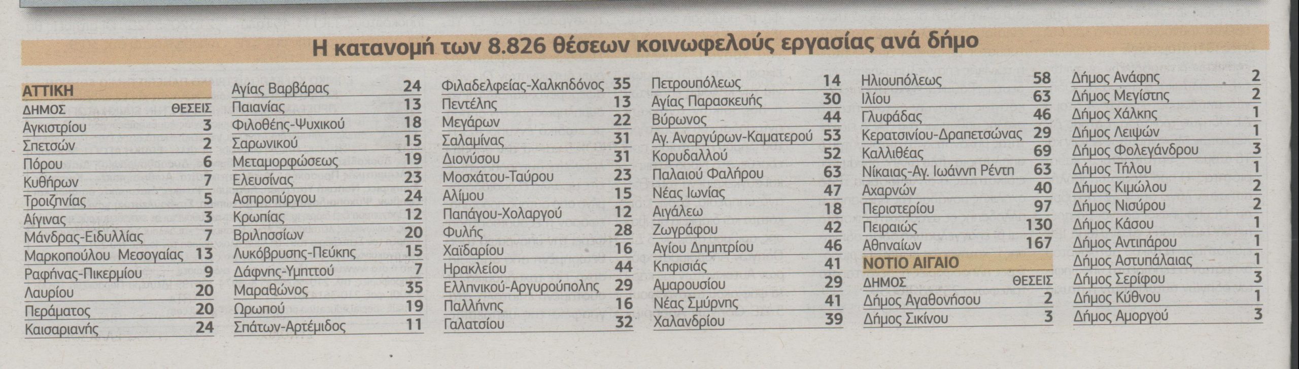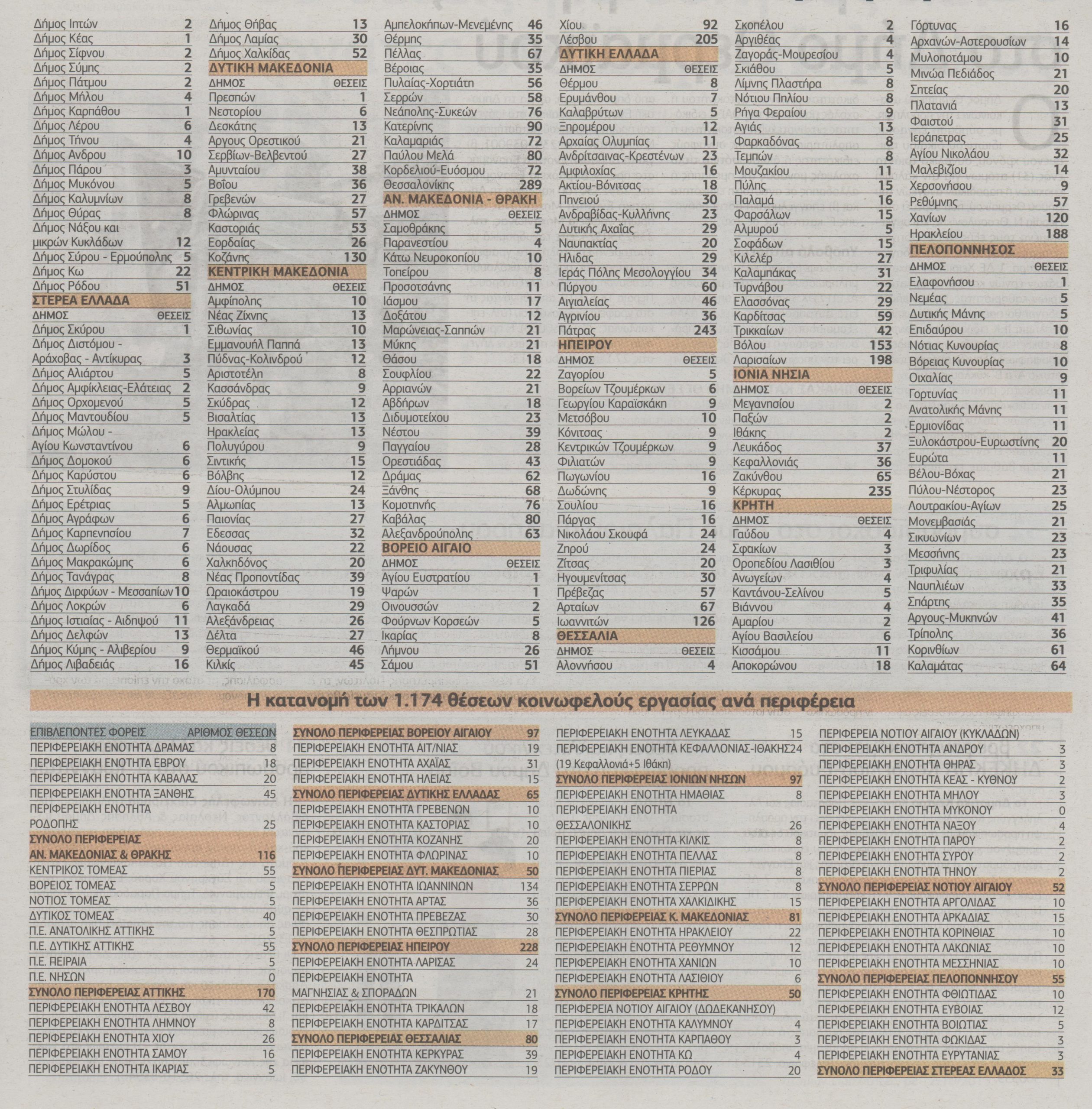 Οι 8.826 θέσεις θα καλυφθούν σε δήμους και άλλες 1.174 σε περιφέρειες από ανέργους κατηγορίας Υποχρεωτικής Εκπαίδευσης.