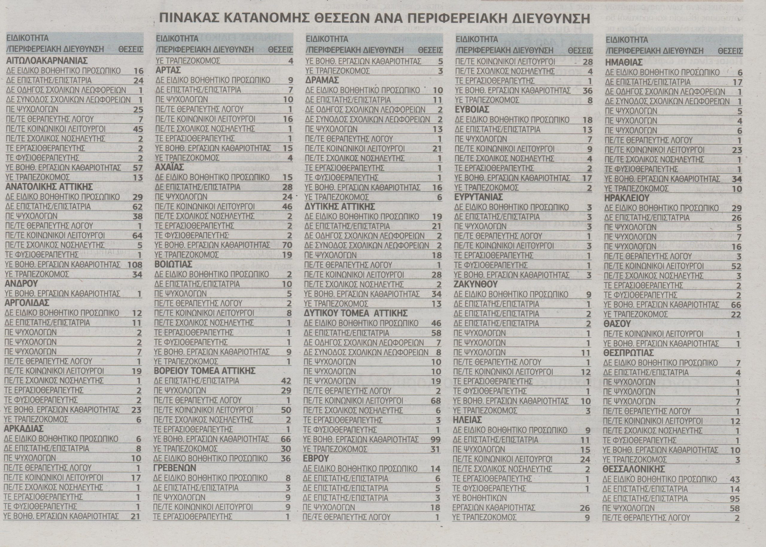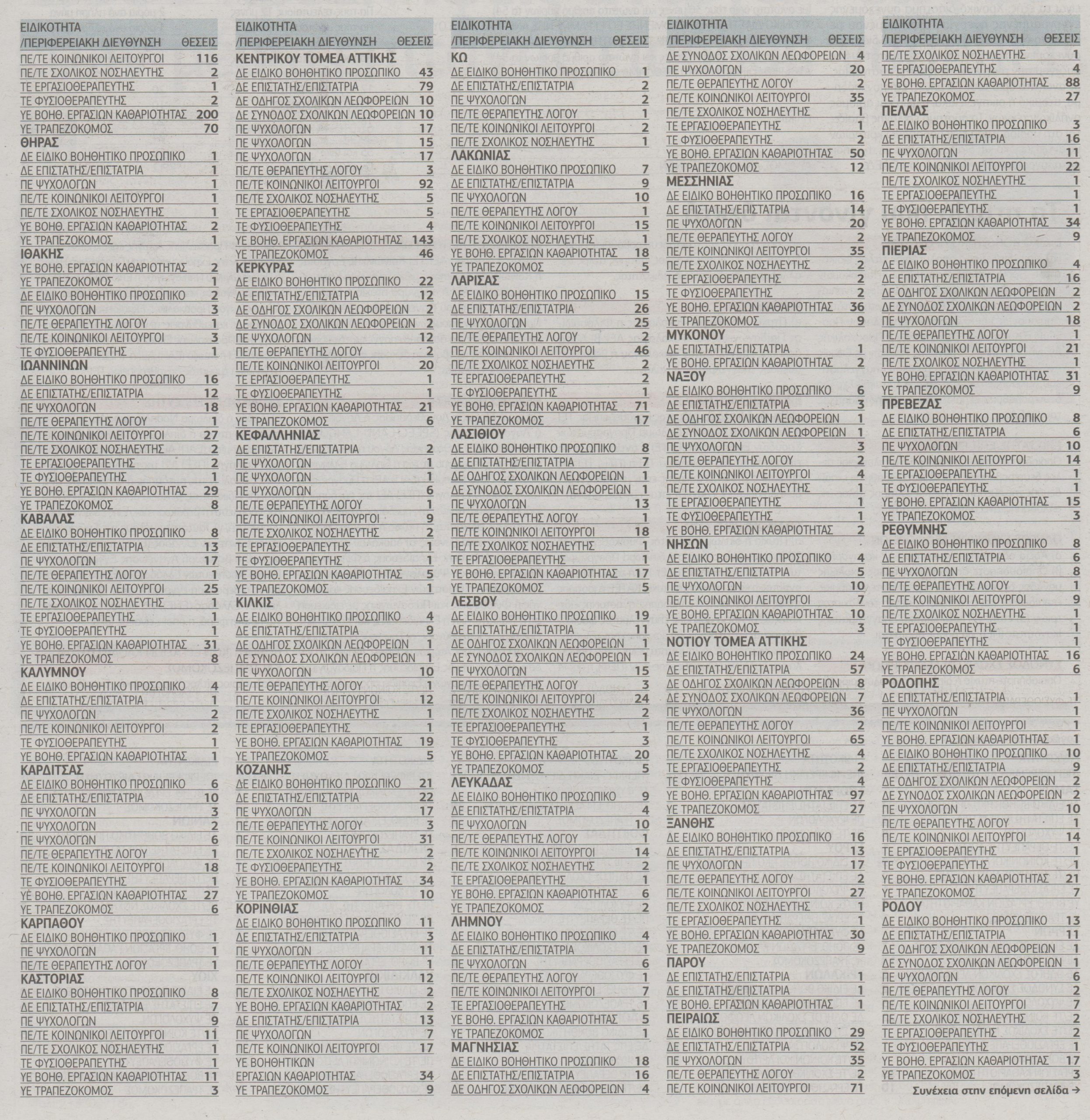 Προσλήψεις στην Παιδεία-Αναλυτικοί πίνακες με τις θέσεις
