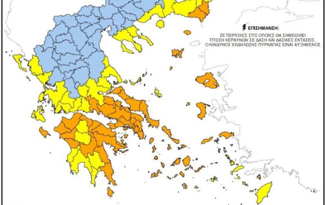 Σύμφωνα με το Χάρτη Πρόβλεψης Κινδύνου Πυρκαγιάς που εκδίδει η Γενική Γραμματεία Πολιτικής Προστασίας του Υπουργείου Κλιματικής Κρίσης & Πολιτικής Προστασίας (www.civilprotection.gr), για σήμερα Παρασκευή 29 Ιουλίου 2022, προβλέπεται πολύ υψηλός κίνδυνος πυρκαγιάς (κατηγορία κινδύνου 4) για τις εξής περιοχές: