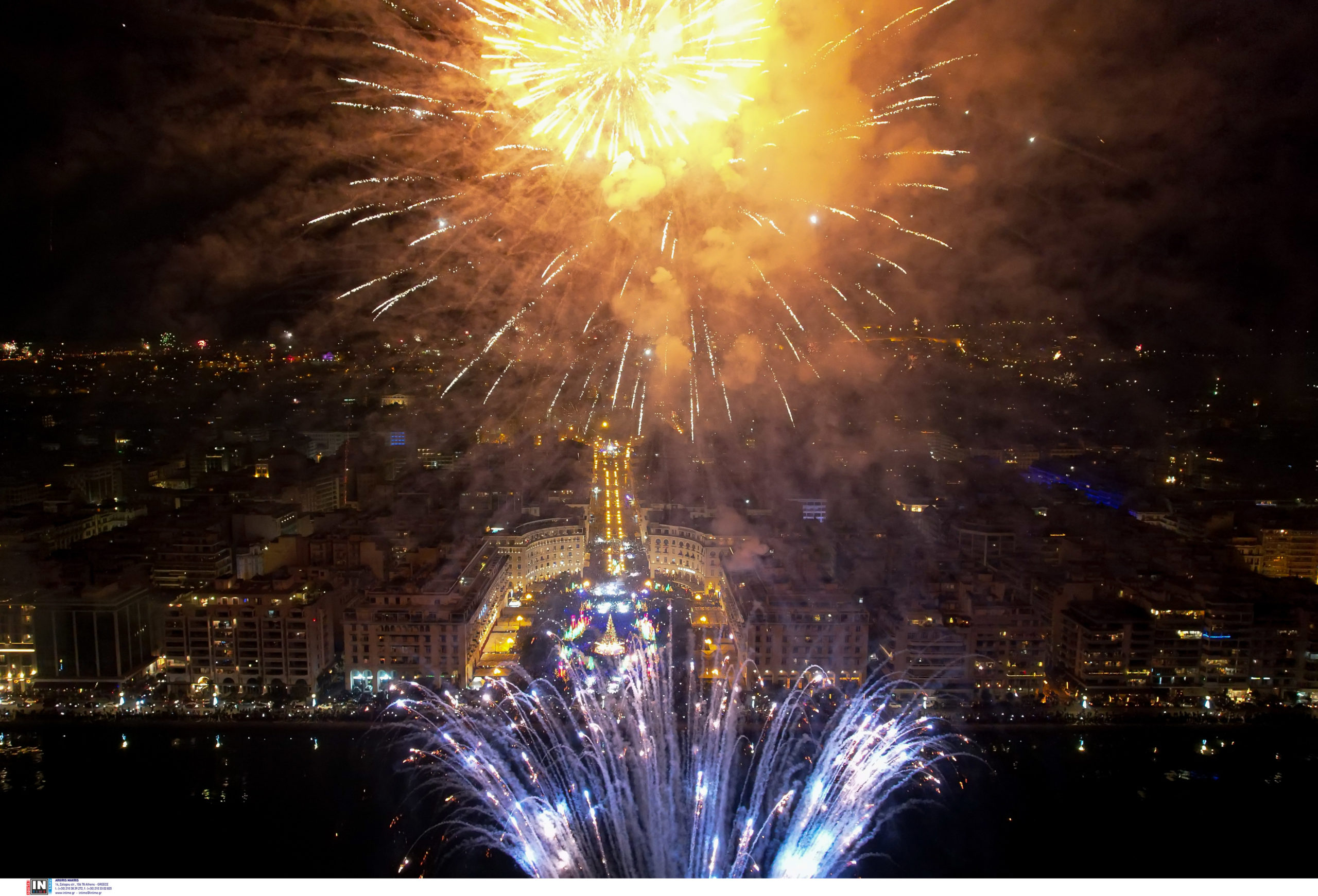 Η Θεσσαλονίκη υποδέχθηκε τη νέα χρονιά με χαμόγελα και με σόου από πυροτεχνήματα που έκαναν τη νύχτα… μέρα στην Πλατεία Αριστοτέλους.