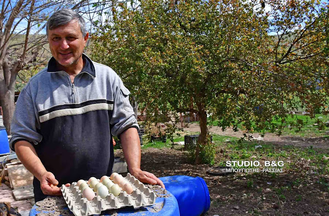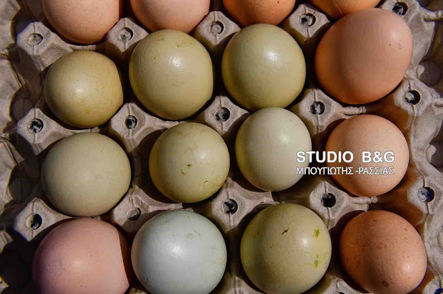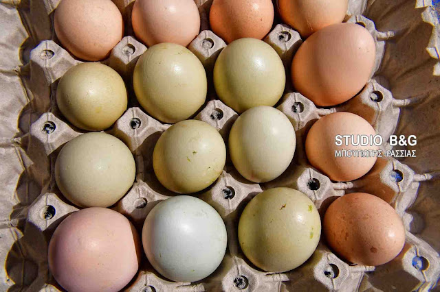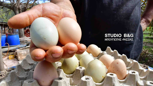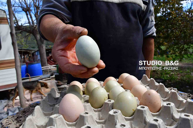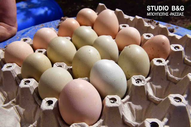 Οι κότες συνήθως κάνουν λευκό ή καφέ αυγό , όμως αυτό δεν ισχύει για τις κότες του αγρότη από τα Λευκάκια Ναυπλίου.