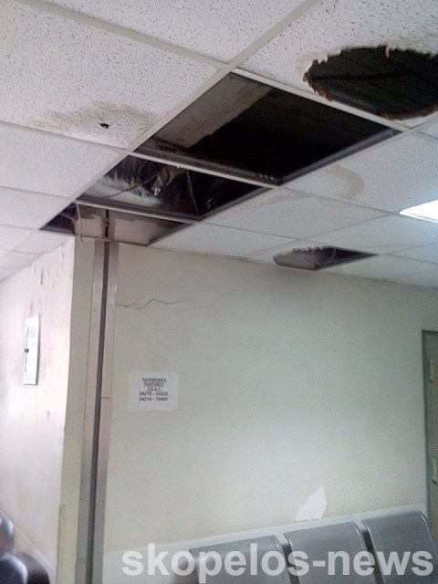 Τραγικές είναι οι συνθήκες που επικρατούν στο ΙΚΑ Βόλου.Ένα πρωτοφανές περιστατικό συνέβη το πρωί της Τρίτης, όπως καταγγέλλουν ασθενείς-επισκέπτες που βρίσκονταν εκεί.Όπως ανέφεραν στην ιστοσελίδα skopelos-news.gr, ξαφνικά άκουσαν έναν εκκωφαντικό θόρυβο, και ένα κομμάτι από το ταβάνι έπεσε πάνω τους. Ευτυχώς κανείς δεν τραυματίστηκε σοβαρά.