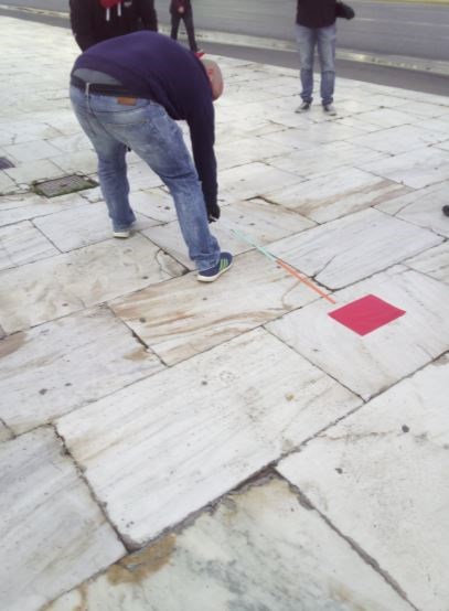 Από νωρίς το πρωί είχαν ξεκινήσει οι προετοιμασίες για τις συγκεντρώσεις με την τοποθέτηση αυτοκόλλητων στο οδόστρωμα προκειμένου οι διαδηλωτές να τηρούν τις απαραίτητες αποστάσεις.