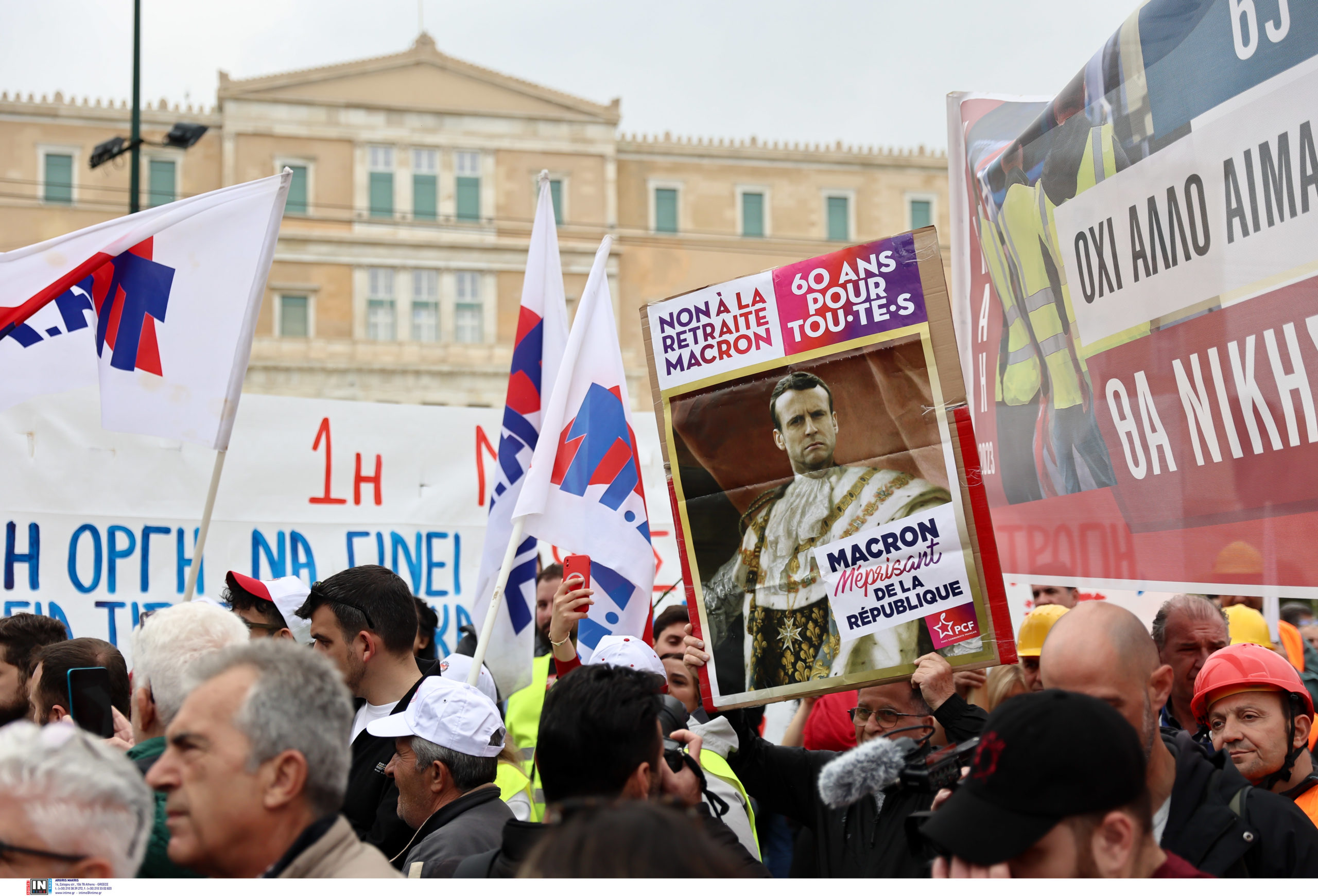 Ξεχωριστό χρώμα προσέδωσε η παρουσία Γάλλων συνδικαλιστών. Οι εργαζόμενοι της Γαλλίας έχουν κινητοποιηθεί έντονα το τελευταίο διάστημα ενάντια στο ασφαλιστικό νομοσχέδιο της κυβέρνησης Μακρόν και οι εκπρόσωποί τους στη σημερινή συγκέντρωση της Αθήνας ανάρτησαν πανό σε δύο γλώσσες: «Οι λαοί θα νικήσουν – Les peoples gagneront». Νωρίτερα, επισκέφτηκαν το Σκοπευτήριο της Καισαριανής και κατέθεσαν λουλούδια.