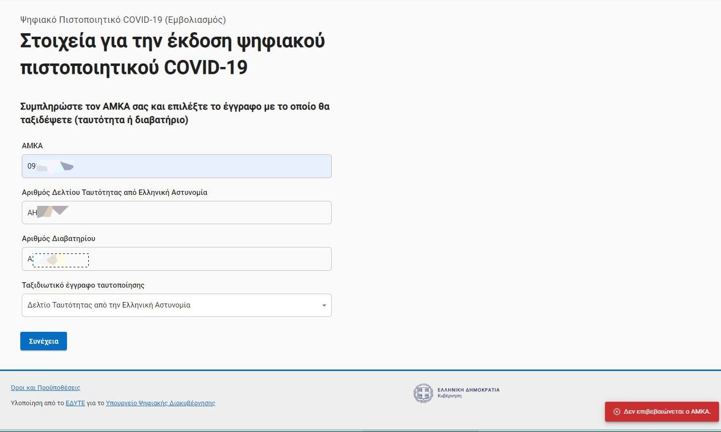 Σύμφωνα με καταγγελίες αναγνωστών στο enikos.gr, ενώ μπαίνουν κανονικά στη σελίδα του gov.gr και φθάνουν στο πεδίο, όπου απαιτείται να συμπληρώσουν τον ΑΜΚΑ τους, εκεί “κολλάει” η διαδικασία. Συγκεκριμένα, ενώ γράφουν τον σωστό αριθμό, από κάτω εμφανίζεται μία ένδειξη σε κόκκινο πλαίσιο που αναφέρει: “Δεν επιβεβαιώνεται ο ΑΜΚΑ” με αποτέλεσμα να μην μπορούν να εκδώσουν το πιστοποιητικό.