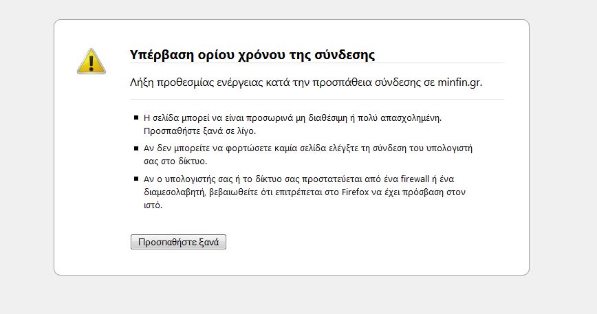 Στην ηλεκτρονική διεύθυνση minfin.gr, η σελίδα δεν «φορτώνει» με αποτέλεσμα να εμφανίζεται το παρακάτω μήνυμα: