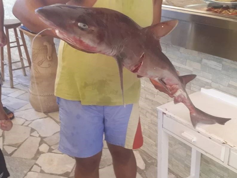 “Πριν από δύο χρόνια, έπιασα ένα καρχαριοειδές μεγάλο, ήταν πάνω από 1,5 μέτρο και ζύγιζε στα 70-80 κιλά. Αυτός που έπιασα σήμερα ζυγίζει περίπου 30 κιλά, αλλά δεν έχω ξαναδεί τέτοιο είδος”.