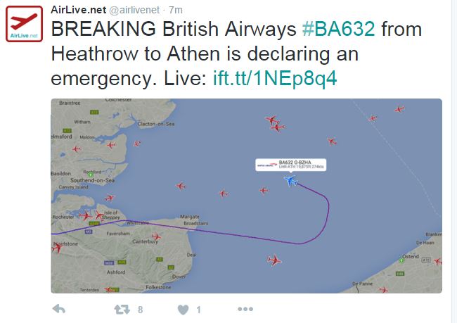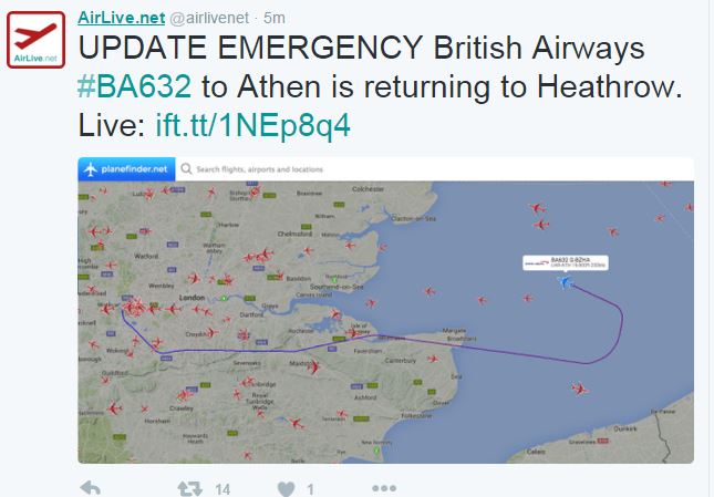 Η πτήση της British Airways BA632 για Αθήνα επιστρέφει στο αεροδρόμιο Heathrow.