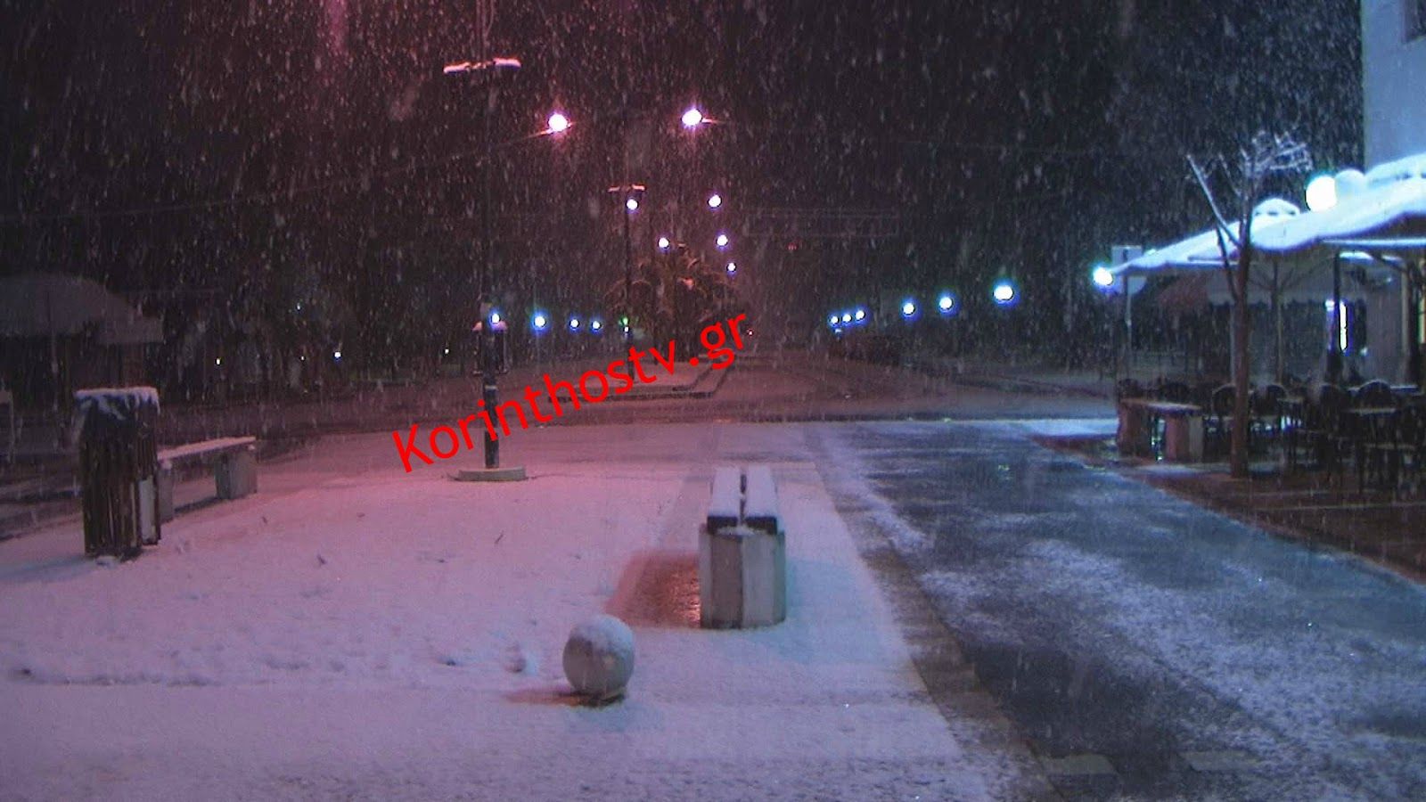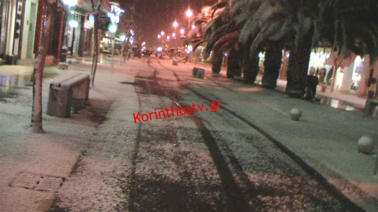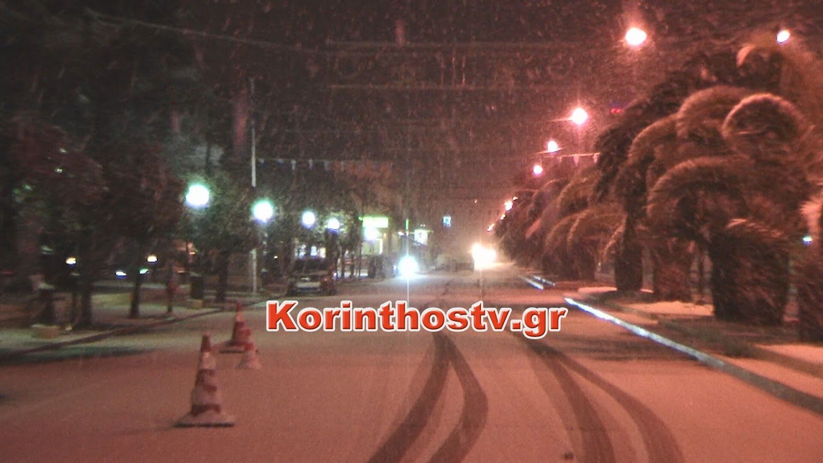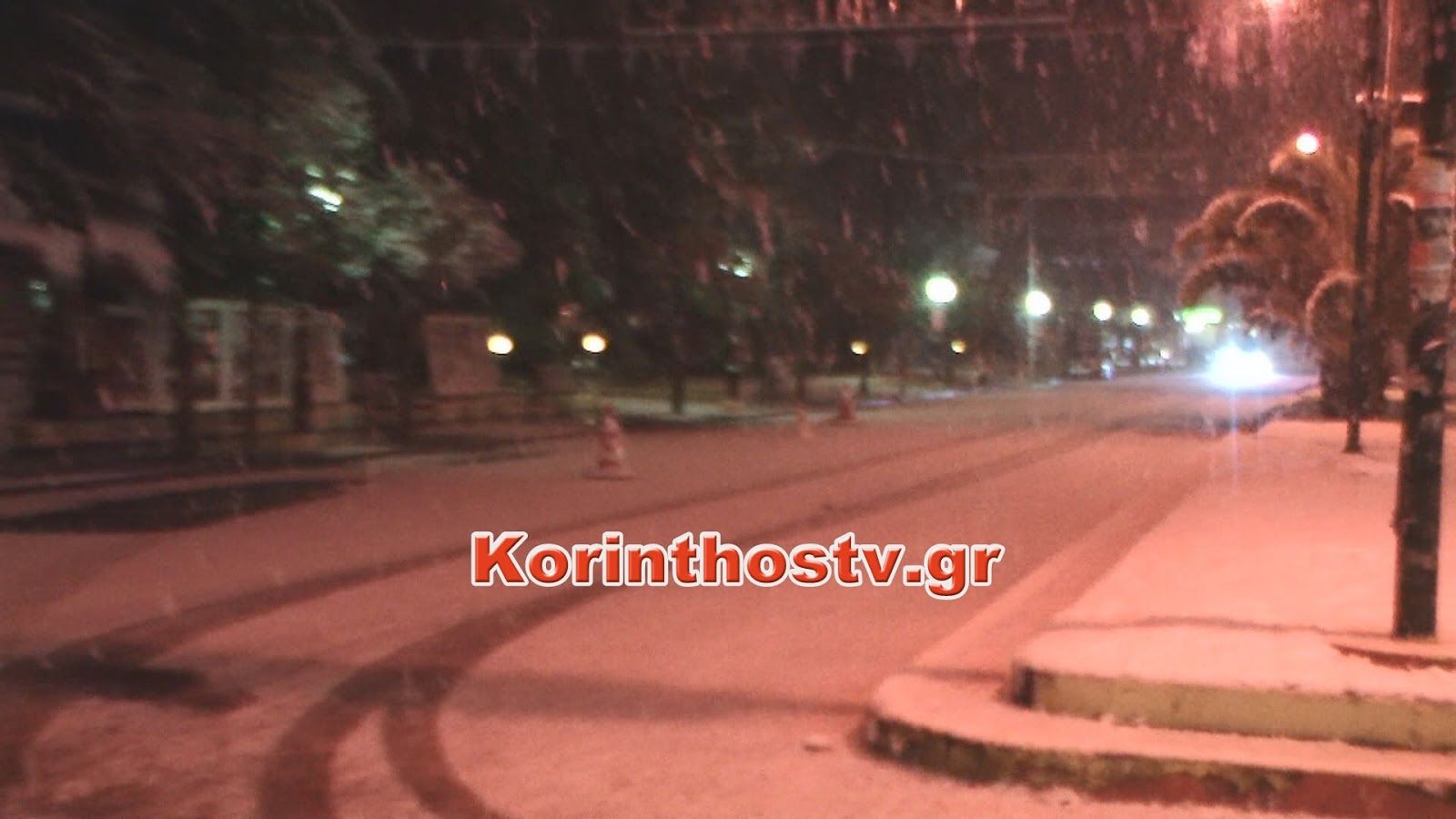 Πυκνή είναι η χιονόπτωση που σημειώνεται αυτή την ώρα στην Κόρινθο, με αποτέλεσμα να το έχει ήδη ”στρώσει” στους δρόμους.