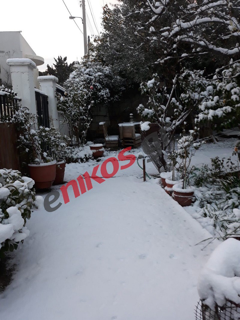 Στα λευκά ντύθηκαν και τα Άνω Λιόσια. Στη φωτογραφία που μας έστειλε αναγνώστης φαίνεται πως έχει σκεπάσει το χιόνι την αυλή σπιτιού στη Ζωφριά.