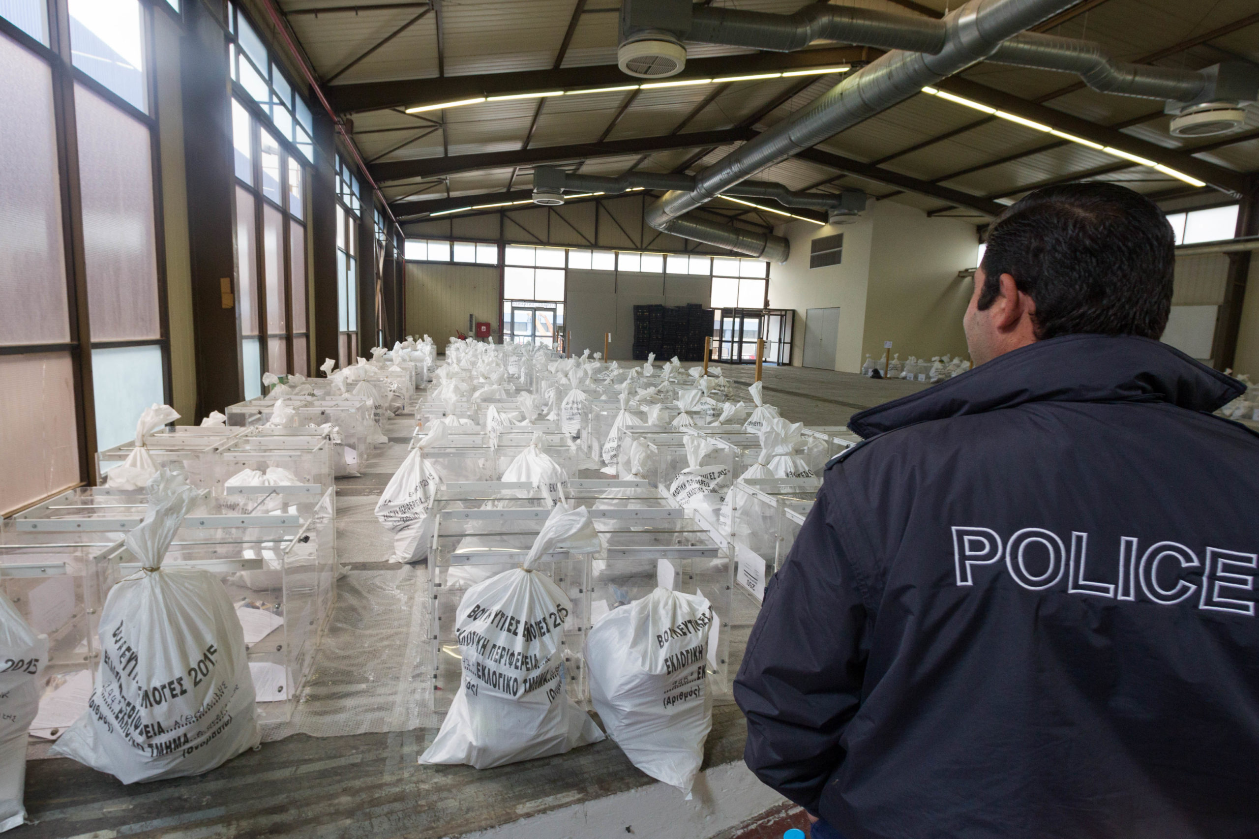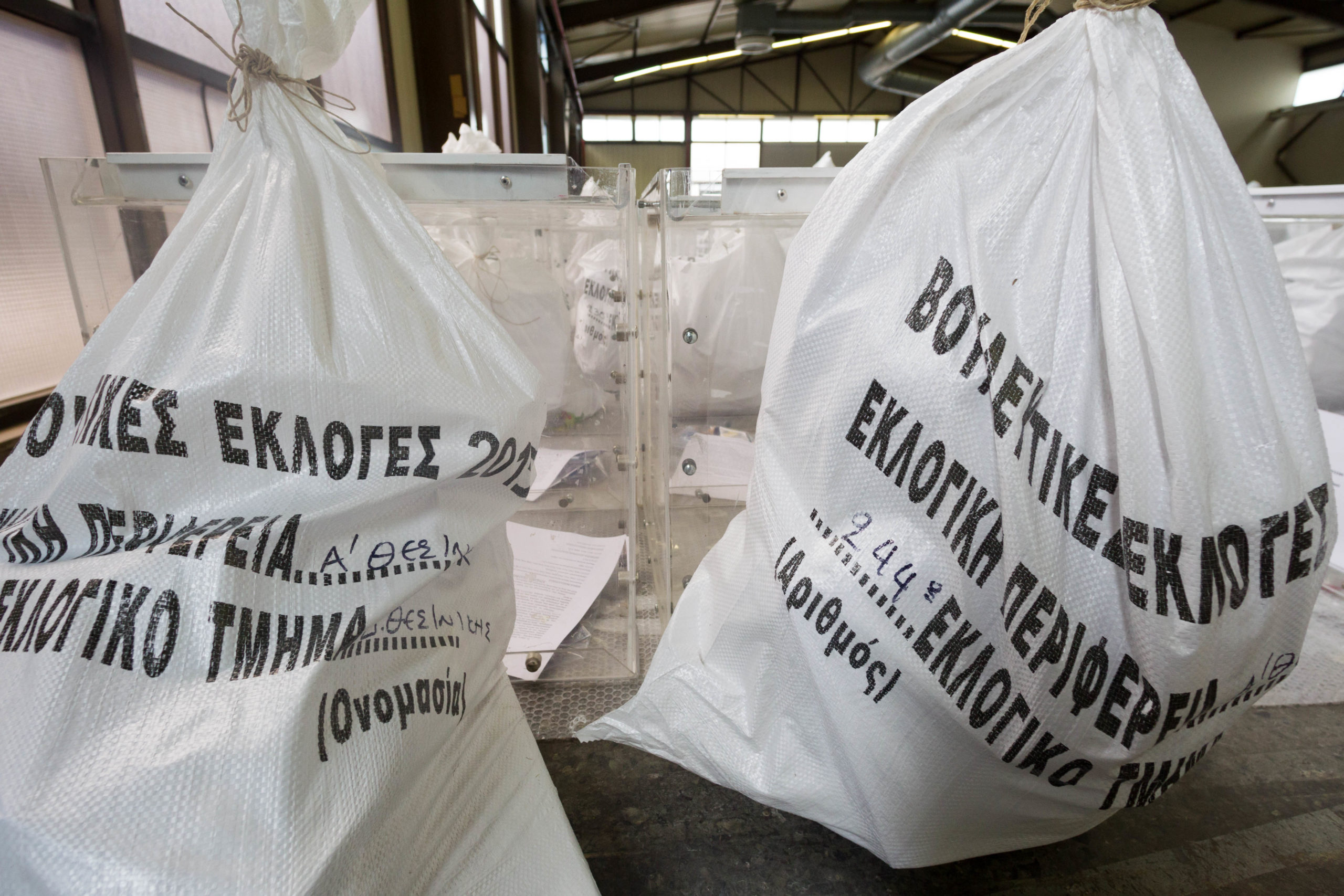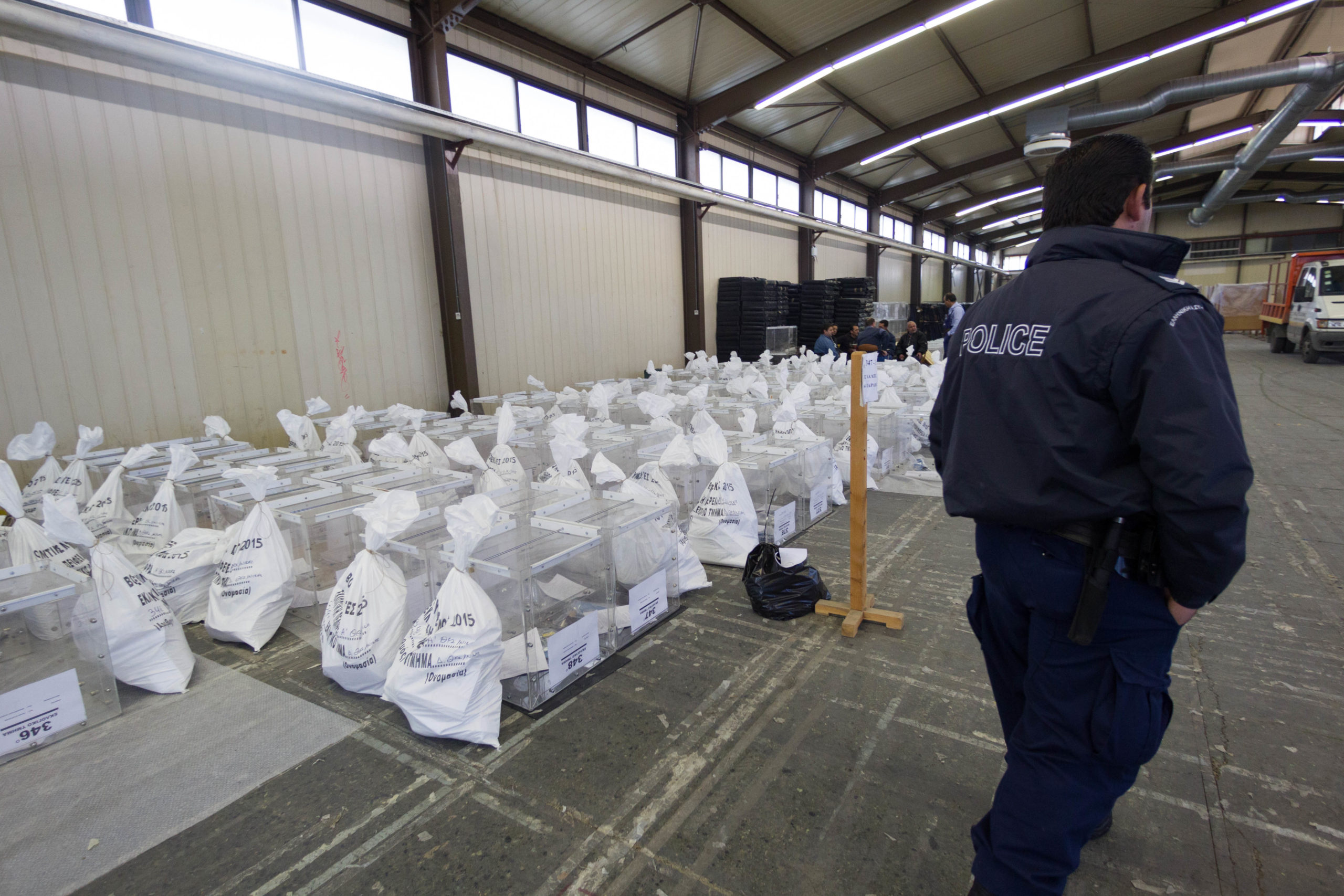 Στις φωτογραφίες απεικονίζονται οι 424 κάλπες και οι 424 σάκοι με το εκλογικό υλικό που θα διατεθεί, καθώς και τα 848 παραβάν που θα παραδοθούν την Παρασκευή και το Σάββατο στα εκλογικά κέντρα.