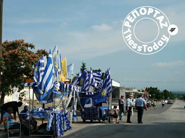 Ωστόσο, πολλοί κάτοικοι της περιοχής έχουν κρεμάσει ελληνικές σημαίες στα μπαλκόνια τους πολλοί κάτοικοι της περιοχής, ενώ στο χώρο της εξέδρας που έχει στηθεί ήδη ακούγονται τραγούδια για την Μακεδονία.