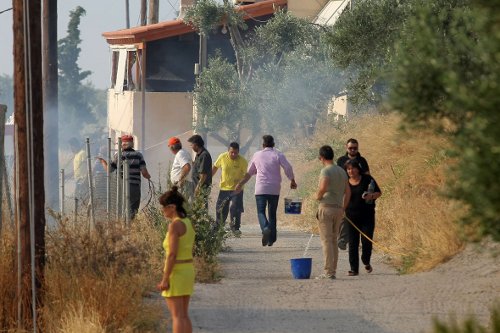 Η φωτιά έχει ξεσπάσει κοντά σε σπίτια με τους ιδιοκτήτες να αγωνιούν για τις περιουσίες τους και τις πυροσβεστικές δυνάμεις να προσπαθούν να θέσουν τη φωτιά υπό έλεγχο.