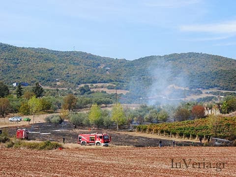 Σύμφωνα με το inveria.gr, στο σημείο έσπευσαν συνολικά τρία οχήματα της Πυροσβεστικής Υπηρεσίας Βέροιας, ωστόσο το πρώτο όχημα που έφτασε στο σημείο κατάφερε να περιορίσει δραστικά την πυρκαγιά, προκειμένου να μην εξαπλωθεί στο αμπέλι και στον ελαιώνα, αλλά και σε παρακείμενες οικίες.