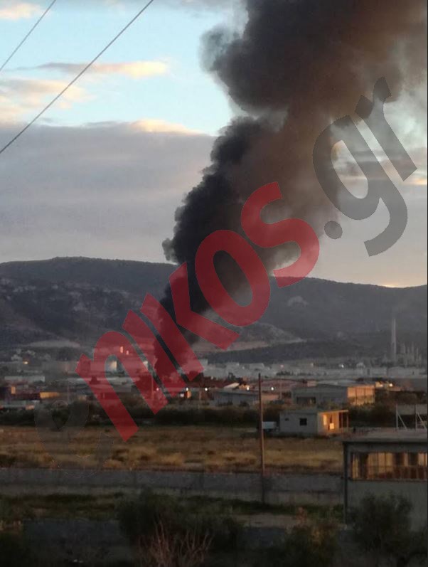 Στη φωτογραφία που έστειλε αναγνώστης του enikos.gr φαίνονται οι πυκνοί μαύροι καπνοί από την πυρκαγιά στο εργοστάσιο.