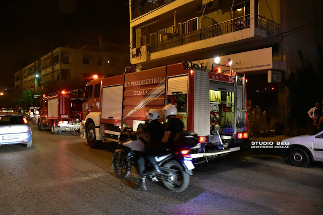 Μεγάλη κινητοποίηση της πυροσβεστικής το βράδυ της Τρίτης στο Ναύπλιο για πυρκαγιά με έντονη μυρωδιά καμένου πλαστικού στην οδό Ασκληπιού.