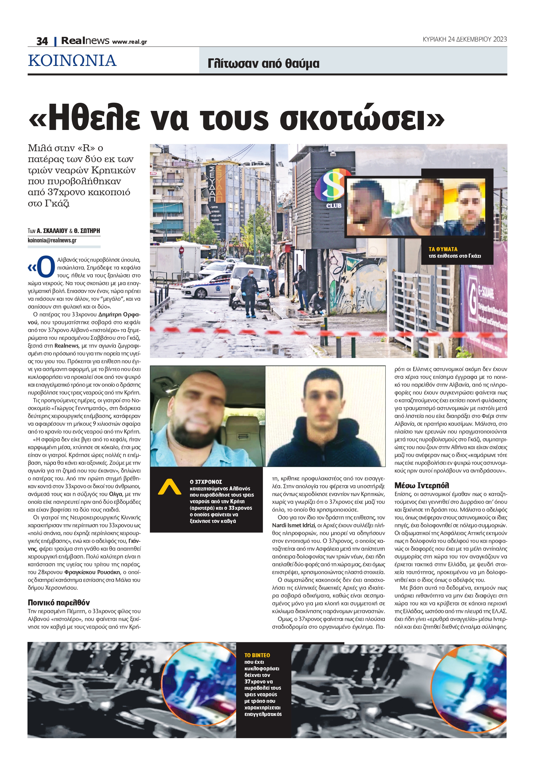 «Ο Αλβανός τους πυροβόλησε ύπουλα, πισώπλατα, στο Γκάζι. Σημάδεψε τα κεφάλια τους, ήθελε να τους ξαπλώσει στο χώμα νεκρούς. Να τους σκοτώσει με μια επαγγελματική βολή. Έπιασαν τον έναν, τώρα πρέπει να πιάσουν και τον άλλον, τον “μεγάλο”, και να σαπίσουν στη φυλακή και οι δύο».