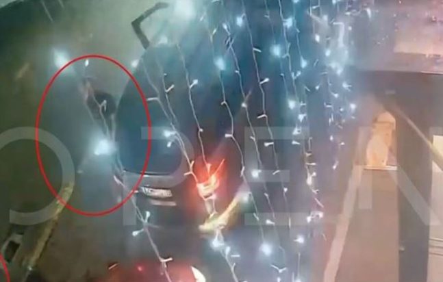 Όπως φαίνεται στο βίντεο, πριν διαφύγουν, ο συνοδηγός αφαιρεί την πινακίδα του οχήματος.