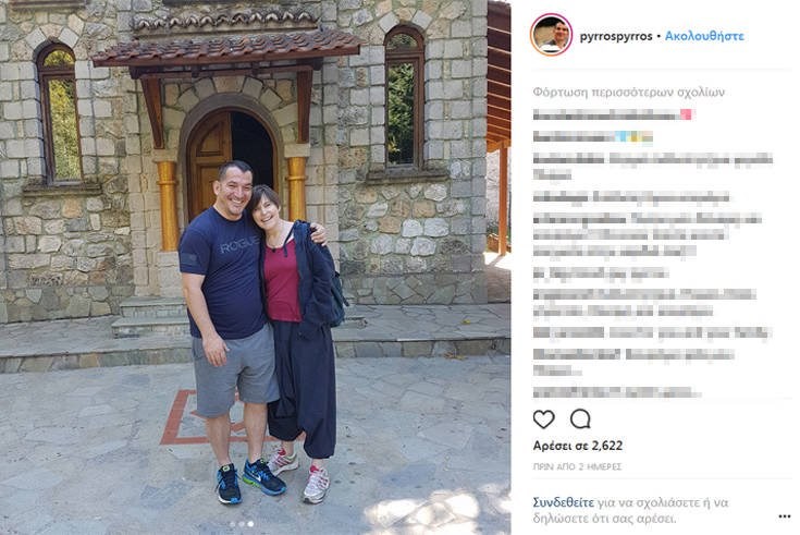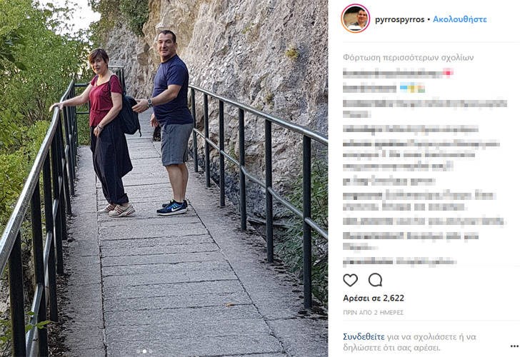Ο Πύρρος Δήμας, λίγες ημέρες μετά την κηδεία της συζύγου του, δημοσίευσε στον λογαριασμό του στο Instagram στιγμιότυπα από μία εκδρομή τους στον Όλυμπο τον Σεπτέμβρη του 2017, όπου την κρατά τρυφερά στην αγκαλιά του.