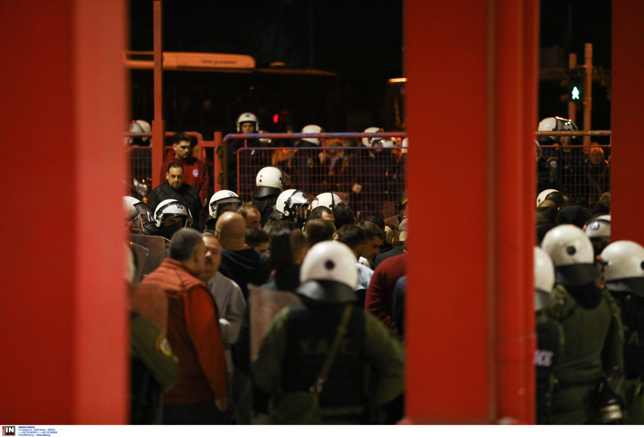Σύμφωνα με την ΕΛ.ΑΣ., λίγο πριν από τις 22:00 περίπου 150 οπαδοί βγήκαν από το κλειστό γυμναστήριο και πέταξαν πέτρες, μολότοφ και φωτοβολίδες προς τις αστυνομικές δυνάμεις, οι οποίες απάντησαν με τη χρήση χημικών.