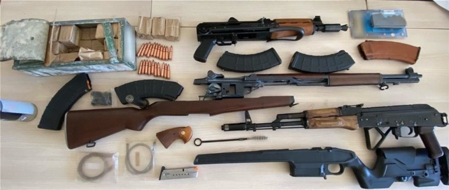 Η επιχείρηση περιελάμβανε μεταξύ άλλων, παράλληλες έρευνες σε οικίες, επιχείρηση, αποθηκευτικούς χώρους, οχήματα και αγροτεμάχια των εμπλεκομένων σε περιοχές των νομών Ηρακλείου, Ρεθύμνης και Αττικής. Χθες, εντοπίστηκε από αστυνομικούς του τμήματος Αντιμετώπισης Οργανωμένου Εγκλήματος Κρήτης, ένας εκ των συλληφθέντων Ελλήνων, κατά το χρόνο που παρέλαβε είδη οπλισμού από υπαίθριο χώρο επί της Εθνικής Οδού, τα οποία ήταν κρυμμένα στο συγκεκριμένο σημείο. Στη συνέχεια αφού ακινητοποιήθηκε, ακολούθησε έρευνα στον άνδρα, σε Ι.Χ.Φ. αυτοκίνητο ιδιοκτησίας του στο οποίο επέβαινε, καθώς και στον χώρο όπου βρέθηκαν και κατασχέθηκαν συνολικά, 2 πολεμικά τυφέκια (kalashnikov), τμήμα πολεμικού τυφεκίου, 6 γεμιστήρες, 722 φυσίγγια πολεμικού τυφεκίου, 2 ελατήρια κλείστρου, το χρηματικό ποσό των 1.795 ευρώ και κινητό τηλέφωνο.