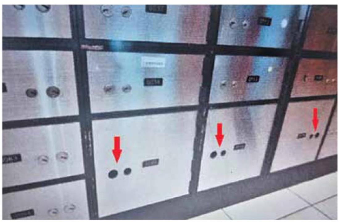 Σύμφωνα με τα φωτογραφικά ντοκουμέντα που παρουσιάζει η εφημερίδα «τα Νέα» από τις τέσσερις διαρρηγμένες θυρίδες (με χρήματα και τιμαλφή που κοστολογούνται περίπου στα 5 εκατ. ευρώ), αλλά και από την εξέταση από τα Εγκληματολογικά Εργαστήρια της ΕΛ.ΑΣ., το άνοιγμά τους έγινε με μικρό εργαλείο στο κενό που υπάρχει ανάμεσα στο μεταλλικό ντουλάπι και το πλαίσιο του φωριαμού.
