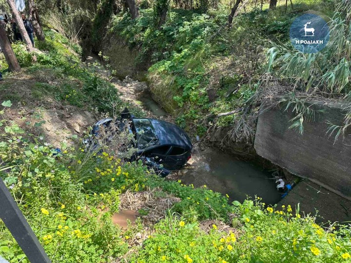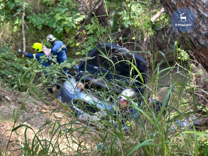 Ρόδος: Τροχαίο ατύχημα στον δρόμο για Καλλιθέα – Αυτοκίνητο με 2 επιβαίνοντες έπεσε σε ρέμα – ΦΩΤΟ