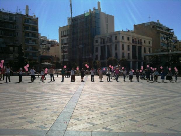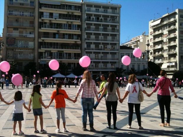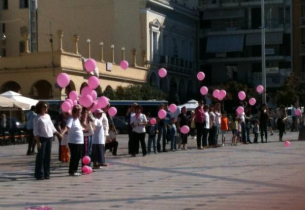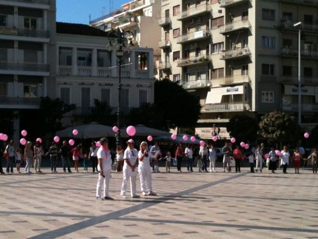 Ο ουρανός της Πάτρας, γέμισε ροζ μπαλόνια. Τα μέλη συλλόγου για τον καρκίνο του μαστού «Άλμα ζωής» έφτιαξαν μια ανθρώπινη αλυσίδα ζωής στην πλατεία Γεωργίου της Πάτρας.