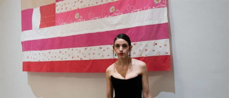 Η ροζ ελληνική σημαία είναι μέρoς έκθεσης της Γεωργίας Λαλέ που φιλοξενείται στο προξενείο και όπως αναφέρει η δημιουργός, θέλει να τονίσει το φαινόμενο της ενδοοικογενειακής βίας και των εγκλημάτων κατά των γυναικών. Η καλλιτέχνιδα, με αυτό το έργο, επιχειρεί να ευαισθητοποίησει το κοινό μέσω της χειροποίητης σημαίας της που υφάνθηκε από σεντόνια που της δώρισαν κακοποιημένες γυναίκες.
