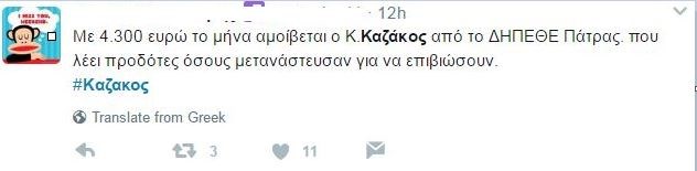 Η δήλωση αυτή έχει γίνει θέμα συζήτησης στα social media με τους περισσότερους να επικρίνουν τον Κώστα Καζάκο.
