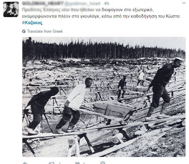 Ο Κώστας Καζάκος χαρακτήρισε τους νέους και τις νέες αυτές ως προδότες επειδή δεν μένουν στον τόπο τους να τον στηρίξουν.