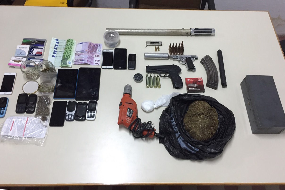 Συνολικά έχουν συλληφθεί εκτός από τον 33χρονο και δύο ακόμη άνδρες, 28 και 26 ετών, σε βάρος των οποίων σχηματίστηκε δικογραφία για τα – κατά περίπτωση – αδικήματα της σύστασης συμμορίας, απόπειρας ανθρωποκτονίας, προμήθειας ναρκωτικών, οπλοχρησίας, ψευδορκίας και απειλής.