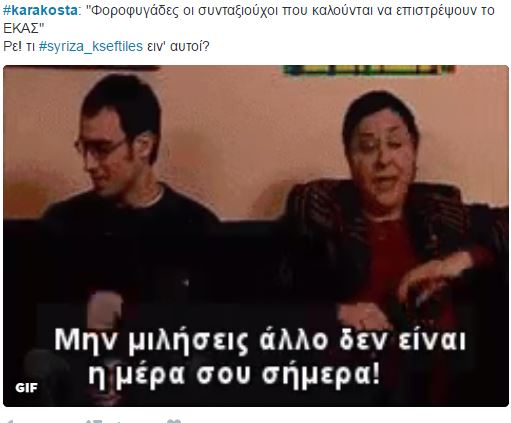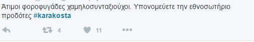 Πολλοί ήταν οι χρήστες του Twitter που με αναρτήσεις τους και το #karakosta, έσπευσαν να αποδοκιμάσουν την άποψη της Εύης Καρακώστα, ενώ σε πολλές περιπτώσεις δεν έλειψε και το χιούμορ. Δείτε ενδεικτικά ορισμένες από αυτές τις αναρτήσεις.
