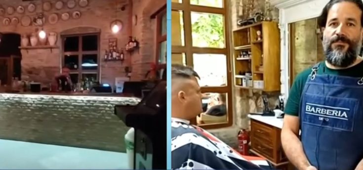 Το συγκεκριμένο κατάστημα βρίσκεται στην Σάμο. Ο ιδιοκτήτης, την ημέρα λειτουργεί την επιχείρησή του ως κουρείο-καφετέρια, ενώ μετά τις 21:00 το βράδυ, μετατρέπεται σε… μπαράκι.