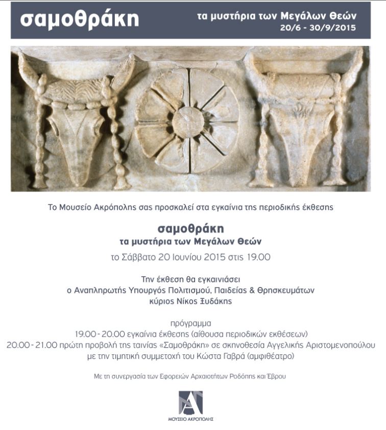 Το Σάββατο στις 20 Ιουνίου θα πραγματοποιηθούν τα εγκαίνια της περιοδικής έκθεσης “Σαμοθράκη – Τα μυστήρια των μεγάλων Θεών”.